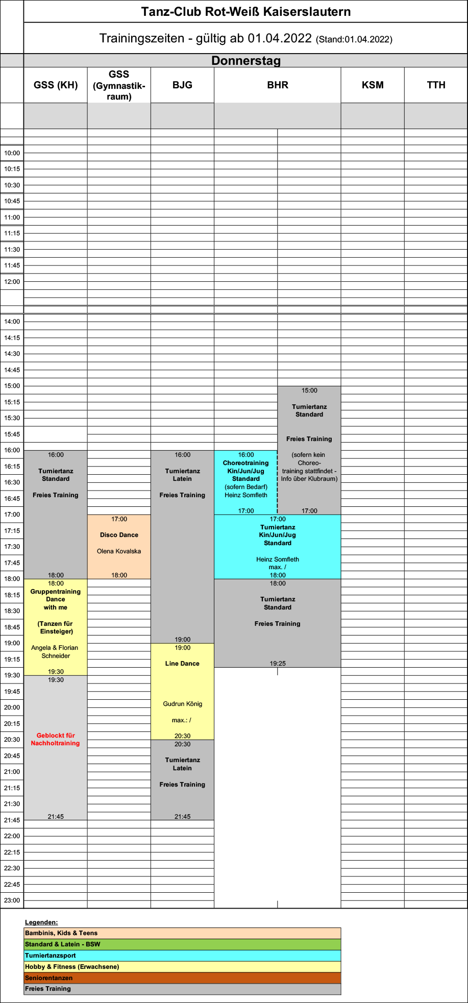 • Trainingszeiten